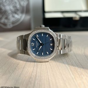 SUPER CLONE MAQUINA ETA PATEK PHILIPPE NAUTILUS 36MM PRATA AZUL BRILHANTE