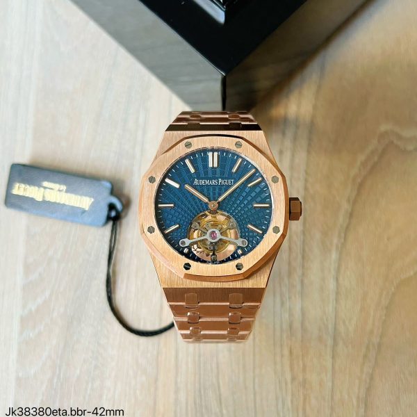 O Super Clone Máquina ETA Audemars Piguet Royal Oak 42mm Rose Tourbillon destaca-se por seu design marcante. A caixa sólida de aço inoxidável, banhada a ouro rosa, não só proporciona uma aparência luxuosa, mas também garante a durabilidade do produto. O diâmetro de 42 mm torna-o ideal para qualquer pulso, oferecendo uma presença forte sem ser excessivo.