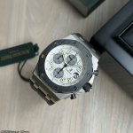 O Audemars Piguet Royal Oak Offshore é conhecido por seu design icônico, e a versão Super Clone não decepciona. A caixa é feita de aço inoxidável 316L sólido, banhado a ouro rosa 18K, conferindo um brilho luxuoso que é ao mesmo tempo discreto e sofisticado. Com um tamanho de 42 mm x 15,5 mm, este relógio se adapta confortavelmente ao pulso, tornando-se um acessório perfeito tanto para o dia a dia quanto para eventos formais.