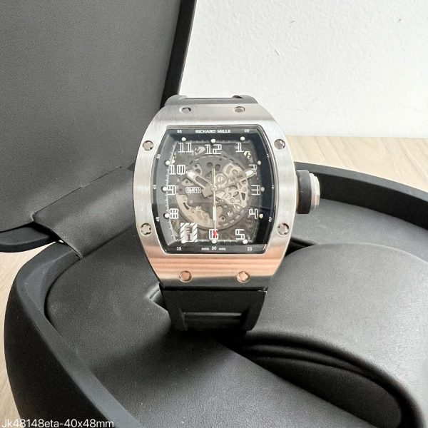 O Super Clone Máquina ETA – Richard Mille RM 010 Prata é uma réplica fiel, desenhada para atender aos padrões mais exigentes dos admiradores de relógios de luxo. Com design esqueleto, caixa em aço inoxidável e pulseira em borracha preta, esta peça representa sofisticação e precisão. Equipado com movimento automático 7750, este modelo entrega não apenas a estética elegante, mas também uma performance altamente funcional.