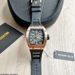Este Super Clone Richard Mille RM 010 tem dimensões marcantes de 49 mm x 41 mm x 17 mm, oferecendo uma presença robusta e destaque no pulso. O uso do aço inoxidável na caixa e no aro proporciona durabilidade, além de uma aparência sofisticada. A combinação da pulseira de borracha preta com o fecho Deployant garante conforto e praticidade ao usuário.