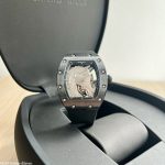 O mostrador esqueleto é um dos destaques deste Super Clone Richard Mille RM, revelando a complexidade do movimento interno. Esta característica oferece uma visão fascinante da engrenagem e dos mecanismos, reforçando a sensação de exclusividade e tecnologia avançada. Cristal de safira à prova de arranhões protege o mostrador, garantindo durabilidade e resistência.
