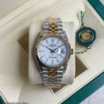 O design clássico do Super Clone Máquina ETA Rolex Datejust Jubilee 36MM é um dos seus maiores atrativos. Com uma caixa robusta de 36mm e um bezel canelado em aço inoxidável banhado a ouro amarelo, este relógio exala sofisticação. O mostrador branco com luminol é simples, mas impressionante, permitindo uma leitura clara do tempo em qualquer condição de luz.