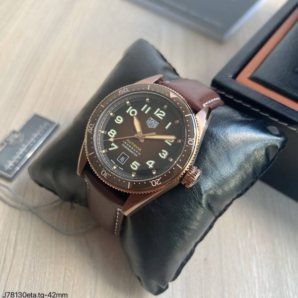 O mostrador marrom foi escolhido por sua versatilidade e apelo atemporal. Com um tom profundo e elegante, ele combina perfeitamente com o brilho da caixa folheada a ouro rosa, criando um equilíbrio sofisticado que reflete o compromisso da TAG Heuer com a excelência no design.
